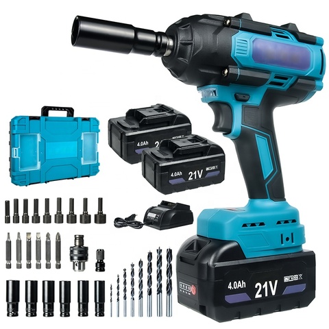 1/2 \ "Hoog Koppel Draadloze Slagmoersleutel 1000n. M 4800Rpm Borstelloze Elektrische Met 2x 4.0ah Batterij Diy Grade 21V Nominale Spanning